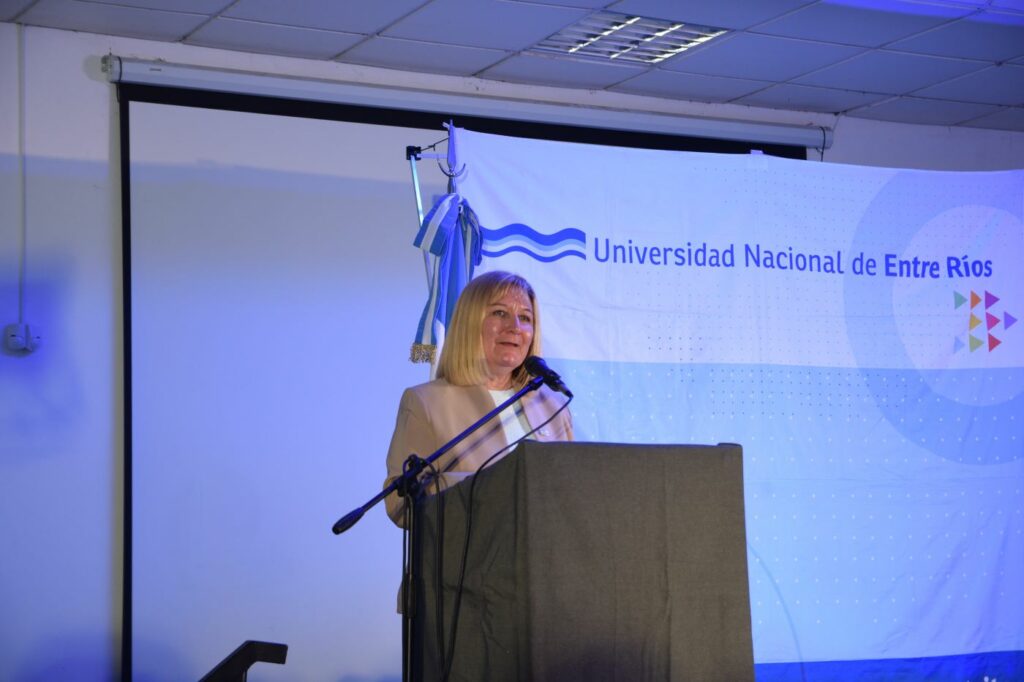 “En lo personal, yo me formé profesionalmente y continúo formándome en la Universidad Nacional de Entre Ríos. Es generadora de posibilidades de formación personal y profesional y por supuesto, formación de excelencia y actualización permanente para todos”. La UNER “es estar, es hacer, es transformar, es estar presente, a lo largo y ancho de la provincia. Es producir conocimientos, innovación, es estar un paso adelante, es problematizarnos, cuestionarnos, autoevaluarnos y avanzar permanentemente. La Universidad Nacional de Entre Ríos es amigos, es gente querida”.