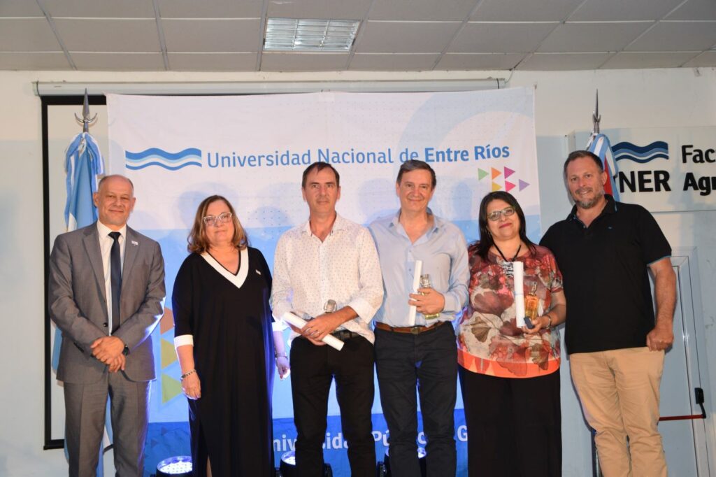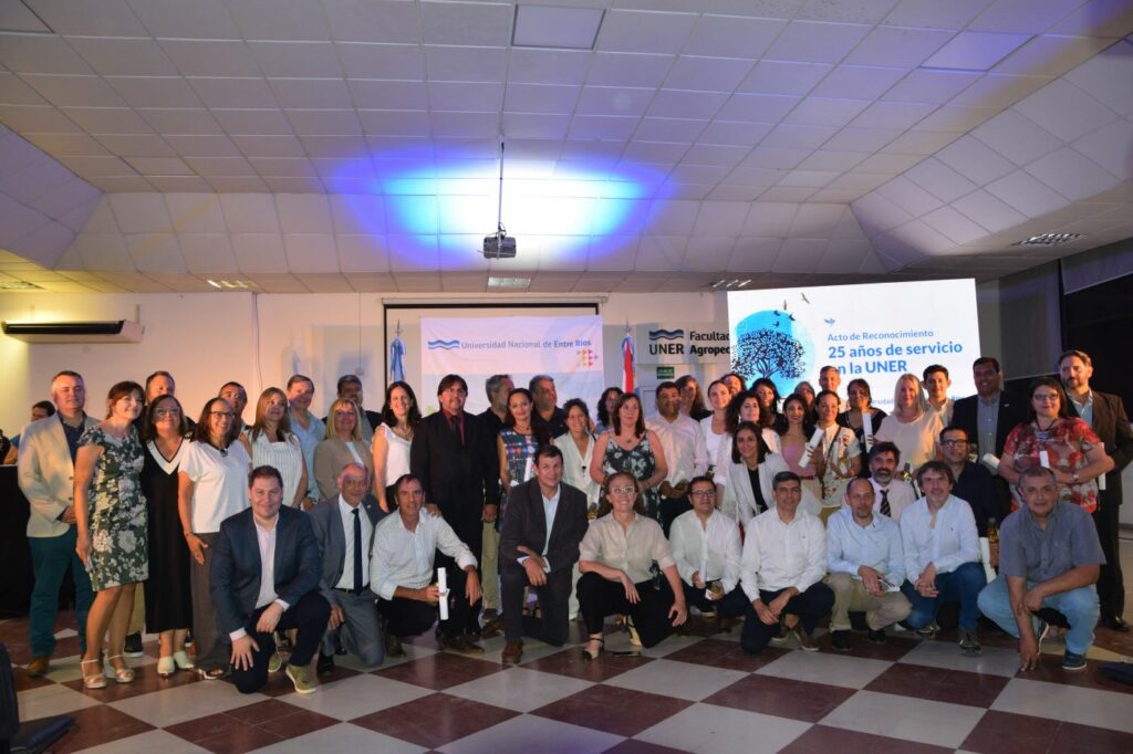 En el salón de la Facultad de Ciencias Agropecuarias en Oro Verde, se realizó el Acto de reconocimiento por los 25 años de servicio de docentes y no docentes de la Universidad Nacional de Entre Ríos, presidido por el Rector Andrés Sabella, quien estuvo acompañado de la Vicerrectora Gabriela Andretich, Decanos, Decanas y Vicedecanas de las unidades académicas. También contó con la presencia de otras autoridades, miembros de la comunidad universitaria y familiares de los agasajados.