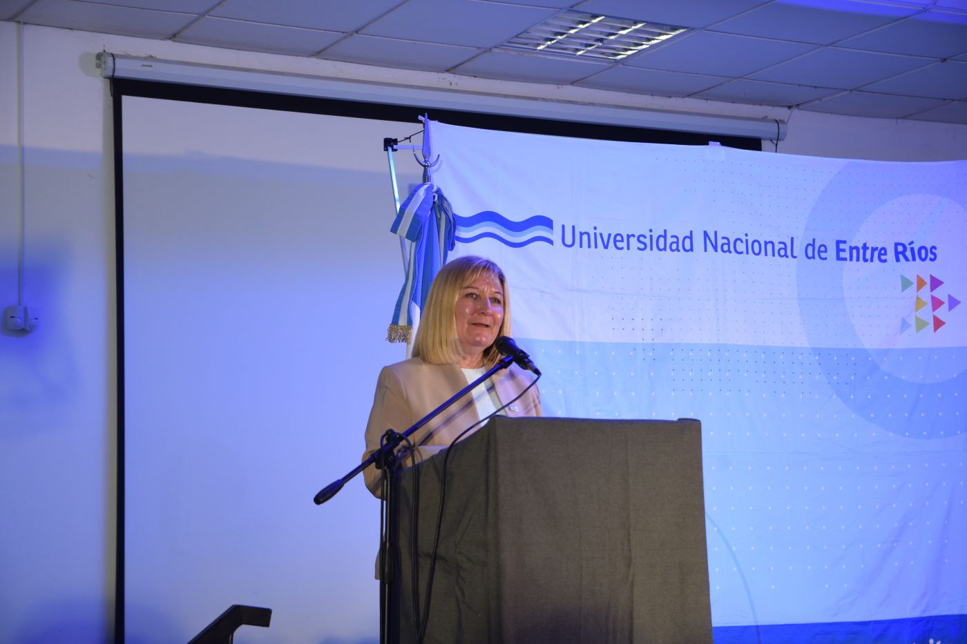 “En lo personal, yo me formé profesionalmente y continúo formándome en la Universidad Nacional de Entre Ríos. Es generadora de posibilidades de formación personal y profesional y por supuesto, formación de excelencia y actualización permanente para todos”. La UNER “es estar, es hacer, es transformar, es estar presente, a lo largo y ancho de la provincia. Es producir conocimientos, innovación, es estar un paso adelante, es problematizarnos, cuestionarnos, autoevaluarnos y avanzar permanentemente. La Universidad Nacional de Entre Ríos es amigos, es gente querida”.
