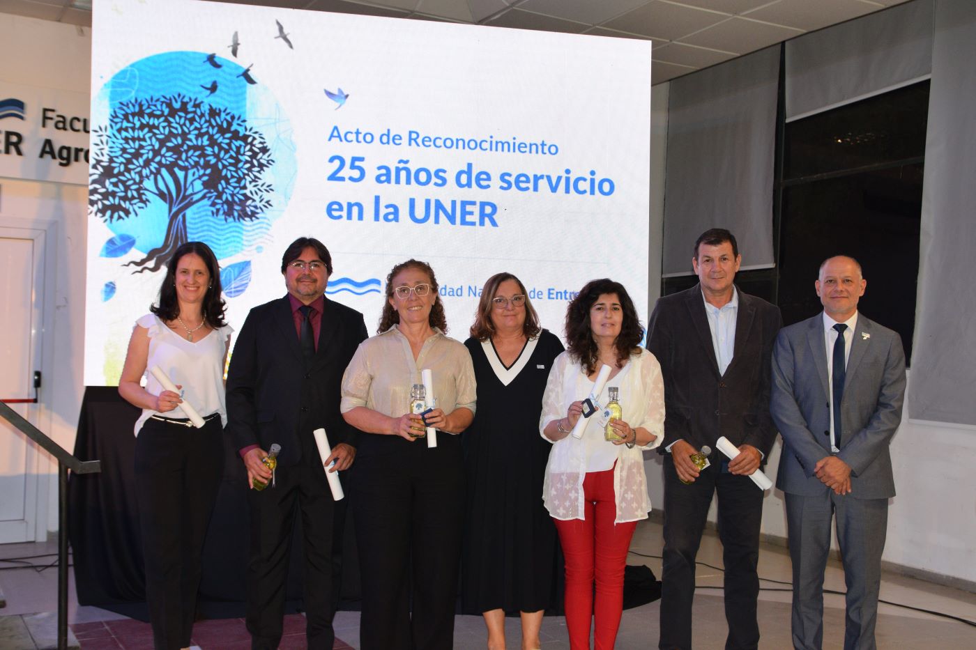 Docentes y no docentes que cumplieron sus 25 años de servicios dentro de la UNER fueron homenajeados el pasado 20 de noviembre. Palabras alusivas, recuerdos de más de dos décadas de recorrido en la intuición y un cierre cultural con el ballet de folklore fueron parte de la emotiva velada.