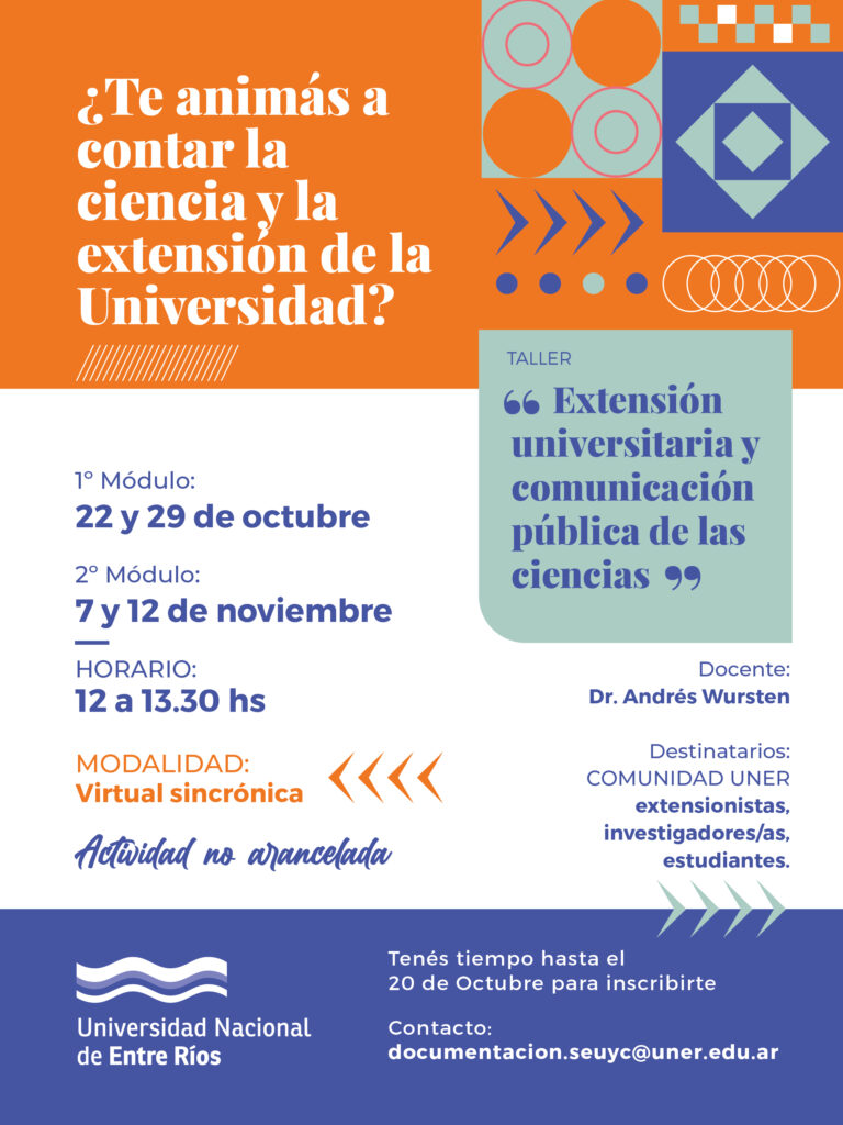 La Secretaría de Extensión y Cultura junto con la Secretaría de Ciencia, Tecnología e Innovación de UNER lanzan el taller “Extensión Universitaria y Comunicación Pública de las Ciencias”, una propuesta de formación que busca fortalecer la articulación entre quienes generan conocimiento y quienes lo comunican en territorio.
