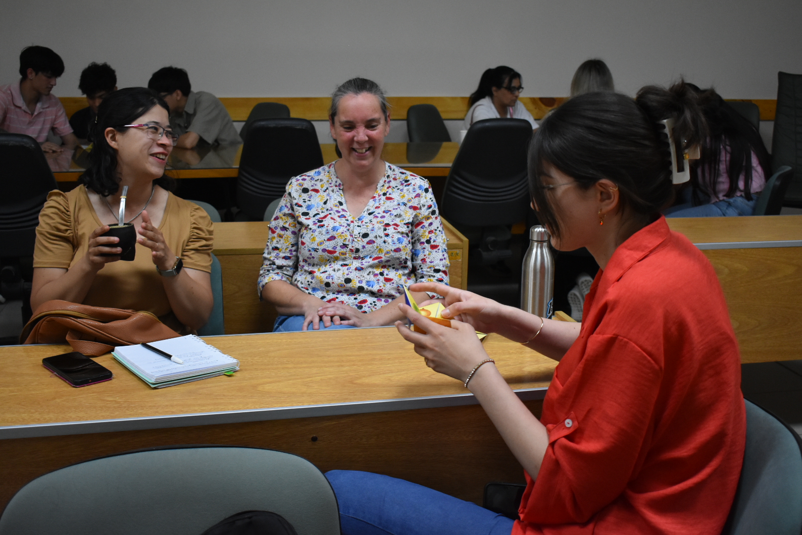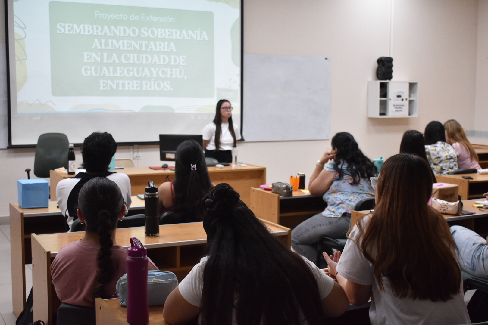 Estuvieron presentes la Secretaria de Extensión de UNER Belén Aguirre junto a la Coordinadora General de la Secretaría de Extensión, Elisa Deluca. También participaron de la jornada las Secretarias de Extensión de distintas unidades académicas, como Karina Arach (Facultad de Ciencias de la Educación), Alejandra Blanc (Facultad de Trabajo Social), y Romina Bacigalupo (Facultad de Ciencias de la Alimentación) quien ofició de anfitriona del evento. También participó Gretel Schneider (Docente del Área de Comunicación Comunitaria y de Educación No Formal de la Facultad de Ciencias de la Educación) y Luz Marina Zapata, vicedecana con funciones de decana de FCAL, quien realizó la apertura del evento.