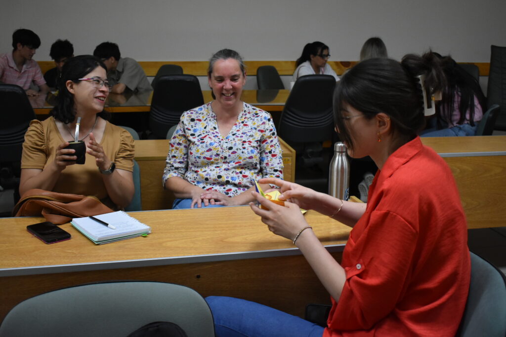 La licenciada en Nutrición Laura Lonardi, docente y extensionista de la Facultad de Bromatología, estuvo a cargo de algunos de los talleres de la jornada. Junto a la docente Agustina de la Fuente y la estudiante Alejandra García desarrollaron una actividad donde participaron estudiantes de primer año de la carrera en Ingeniería en Alimentos, orientado a reflexionar sobre qué acciones se pueden realizar como comunidad universitaria para promover una alimentación justa, saludable y sustentable.