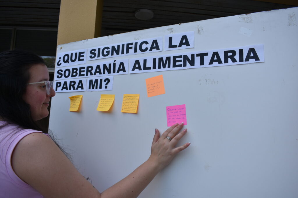 “En un segundo momento, coordinamos también el taller titulado ¿Qué significa para mí la soberanía alimentaria? ¿Sabemos qué comemos? ¿Qué queremos y qué elegimos?. Fue un espacio muy rico donde se generó un diálogo de saberes entre las personas de la comunidad que participaron: estudiantes de colegio secundario, docentes de la escuela secundaria y estudiantes universitarios, donde reflexionamos en torno a los alimentos que consumimos, quiénes los producen, cómo son producidos, qué decisiones tomamos en torno a esos alimentos que elegimos para nuestro plato”, comentó Lonardi.